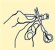 Cortar el extremo no dilatado de la inyección para eliminar el cierre